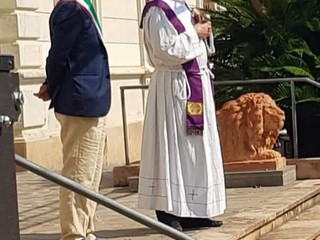 Alla presenza delle autorità cittadine, delle associazioni di volontariato, della Protezione Civile, e di numerosi cittadini e turisti, la tromba della Banda Città di Alassio ha eseguito "Il Silenzio".