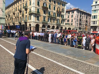 Un momento di preghiera e un minuto di silenzio, in piazza Mameli a Savona, uniti nel cordoglio e nel ricordo delle vittime del crollo del ponte Morandi.