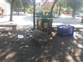 Savona, caos nei giardini del Prolungamento: cassonetti rovesciati e spazzatura ovunque