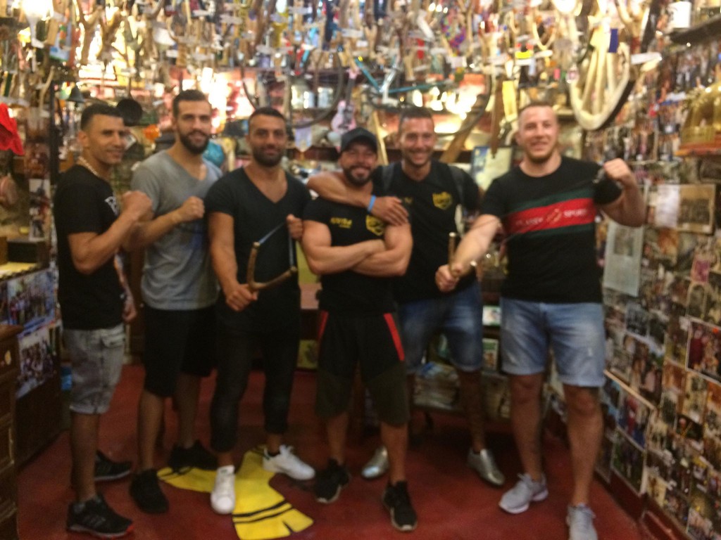 Guidati dal coach Alessandro De Blasi, fondatore del Kombat Team di Alassio, hanno fatto visita alla cantina dei Fieui di caruggi di Albenga per autografare la mattonella loro dedicata :