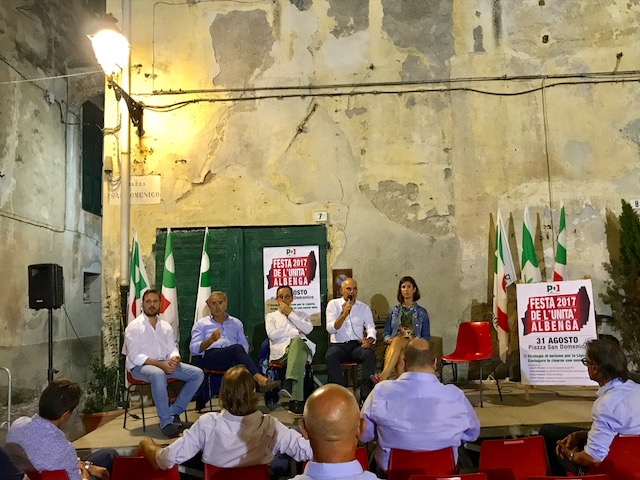 Anche quest’anno, come di consueto, il circolo PD di Albenga organizza la Festa dell’Unita’ che si aprirà giovedì 30 agosto per concludersi il 1 Settembre. La Festa si svolge, come nei due anni trascorsi, in piazza San Domenico, una delle tante - e bellissime - piazzette del centro storico.
