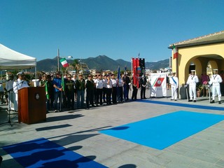 Di fronte a un nutrito pubblico che comprendeva numerose autorità politiche da tutta la provincia e vari rappresentanti delle Associazioni Combattentistiche e d'Arma e delle Leghe Navali del comprensorio, hanno preso la parola nell'ordine, oltre ai due comandanti, uscente e subentrante, il Comandante della Capitaneria di Porto di Savona, Capitano di Vascello Massimo Gasparini, il sindaco di Loano Luigi Pignocca e l'Ammiraglio Nicola Carlone, direttore marittimo della Liguria e comandante della Capitaneria di Porto di Genova.