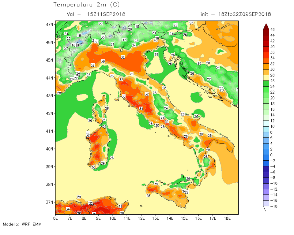 Un leggero calo dei geopotenziali in quota favorirà lo sviluppo un po’ più diffuso di instabilità pomeridiana sui rilievi che occasionalmente potrà raggiungere le pianure tra giovedì e venerdì (migliorerebbe da sabato), ma senza influire più di tanto sulle temperature che rimarranno stazionarie almeno fino al weekend.