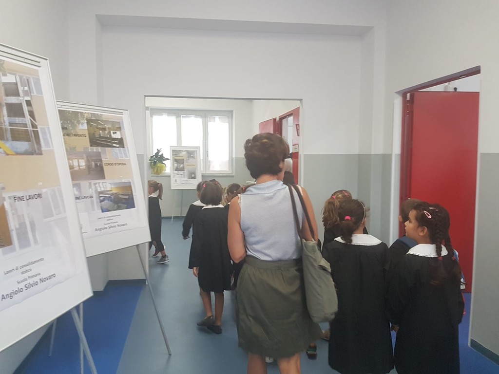 Quella che si sono trovati davanti studenti, genitori ed insegnanti è una scuola totalmente rinnovata. Nei corridoi, cartelli esplicativi ripercorrono e spiegano tutte le fasi dell’importante intervento di consolidamento ma non si è trascurata una attenzione particolare all’estetica e alla scelta dei materiali.