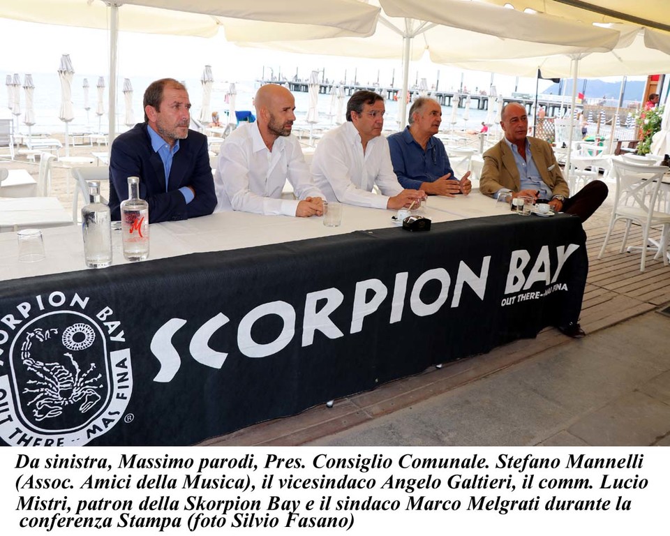 “Lo scorso anno è nata la collaborazione con il Riviera Music Festival di cui Scorpion Bay è stata main partner – spiega Stefano Mannelli, organizzatore della rassegna concertistica che da tre estati anima il calendario alassino – un feeling immediato quello che si è istaurato e che ci ha portato oggi ad aprire nuove collaborazioni anche con l’Amministrazione Comunale”.