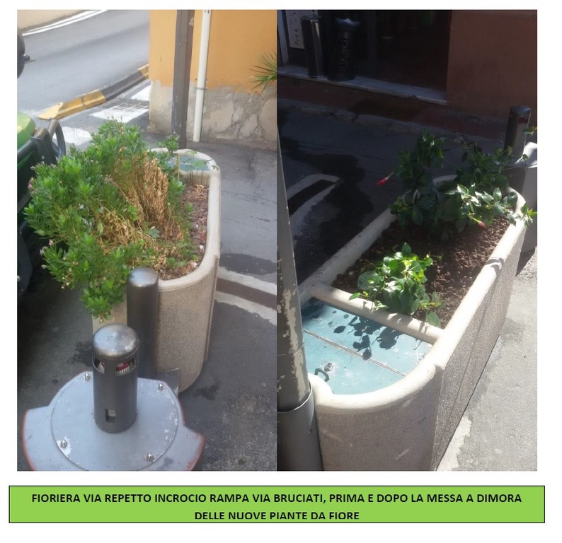 "Le piantine sono già state piantumate nelle fioriere di Viale Liguria sotto i portici tra il bar Caffetteria e l’hotel Europa, nelle tre fioriere del portico di Corso Bigliati davanti 'Complici' e nella fioriera di Via Repetto davanti la rampa di accesso per Via Bruciati - prosegue Silvestro - si tratta di un mio piccolo omaggio personale alla mia cittadina per contribuire a rendere gli spazi pubblici più belli e decorosi".