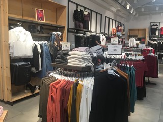La parte iniziale del reparto donna è dedicato alla collezione glam, con articoli prettamente eleganti. Quest’anno è molto in voga il fiore, la riga, il quadretto, il maculato e soprattutto il ritorno ai magnifici e sbarazzini anni 80/90. Come ogni anno, in un importante slancio di gusto si possono trovare all’interno del punto vendita dello shopping center più ampio della riviera ligure, i basici pantaloni a 5 tasche, le t-shirt manica lunga girocollo, a v e lupetto e gli ecopelle di colore lilla e viola.