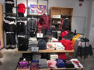 Proseguendo per il reparto, la parte dedicata all’urban è incentrata sulla vestibilità dedicata a tutti i giorni, più street e si possono trovare i jeans, i pantaloni e lo stile più ginnico, la banda orizzontale nelle felpe e lungo tutta la manica nelle t-shirt. Con una parete interamente dedicata agli anni 80, in cui prevale molto il rosso e il bordeaux.