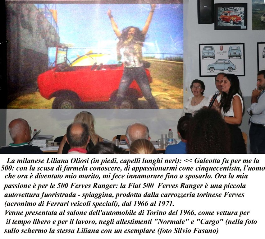 Ora si interessa dei modelli fuori strada Fiat 500n Ferves. I padroni di casa Domenico Romano, Sandro Scarpa, il conservatore del Museo Ugo Elio Giacobbe e la direttrice di "QUATTRO PICCOLE RUOTE" Stefania Ponzone assieme a Francesca Caneri dell'ufficio stampa hanno tenuto banco illustrando i sondaggi e le statistiche che spiegavano l'avvicinamento dei giovani alle vetture d'epoca, nella fattispecie alla Fiat 500.