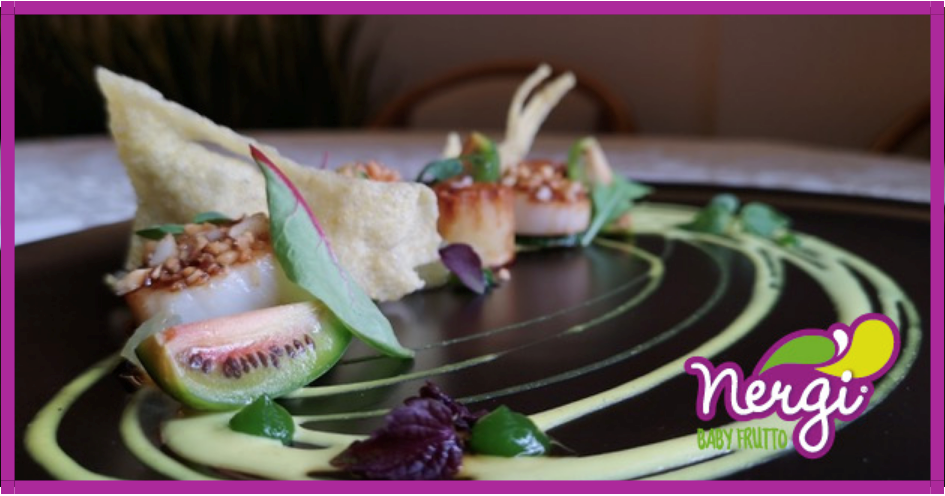 La sua personale interpretazione di Nergi è un originalissimo secondo piatto (realizzato con il baby frutto fresco, disponibile fino a novembre nei supermercati). Ecco la ricetta!Capesante e patate arrosto con salsa edo,