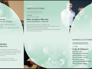 Il pomeriggio (18) sarà dominato dalla chitarra solista di Maria Luciani, una giovane musicista di origine italiana che da anni vive in Svizzera. Maria ci farà ascoltare un programma suggestivo, lei vincitrice di concorsi, lei dal tocco delicato. La serata (21) vedrà di scena il Vivaldi Guitar Trio, formato da Mario Cosco, Enrico Negro e Ignazio Viola. Il Trio ha un curriculum importante, ha girato mezzo mondo portando ovunque un virtuosismo invidiabile ed una tecnica solidissima.