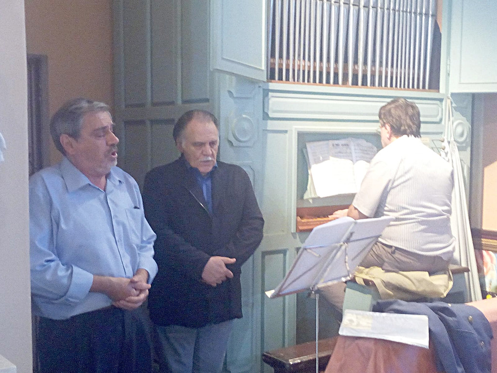 Così la banda ha dato un breve ma significativo saggio della sua bravura con l’esecuzione dei brani che di solito vengono intonati durante le processioni; il tenore Andrea Elena e il baritono Giovanni Puerari si sono esibiti nell’interpretazione di composizioni sacre; il pittore Ghiringhelli ha illustrato le caratteristiche cromatiche e contenutistiche dei dipinti esposti davanti alla balaustra.