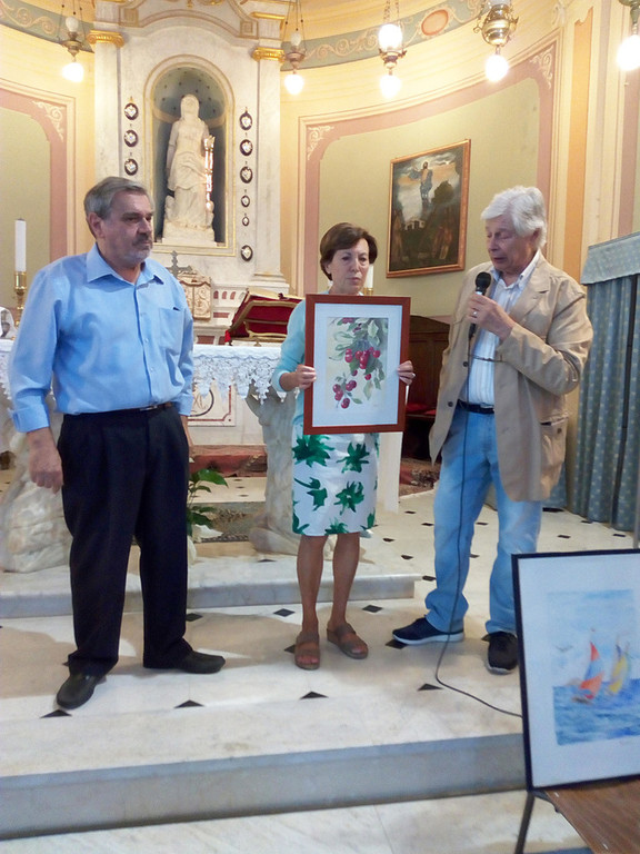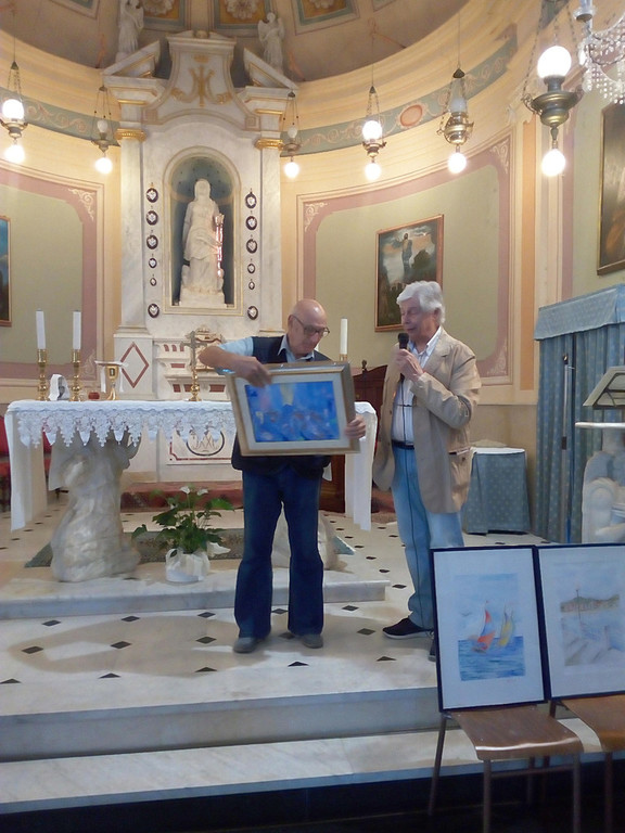 Durante la 28a Rassegna di Arte e Poesia, manifestazione che si è svolta ieri domenica 30 settembre presso il santuario della Madonna della Guardia di Alassio, artisti e pittori hanno avuto modo di salutare Mons. Angelo De Canis andato in pensione questa estate dopo 54 anni di sacerdozio e 34 al sevizio della parrocchia alassina di Sant’Ambrogio (LEGGI QUI)