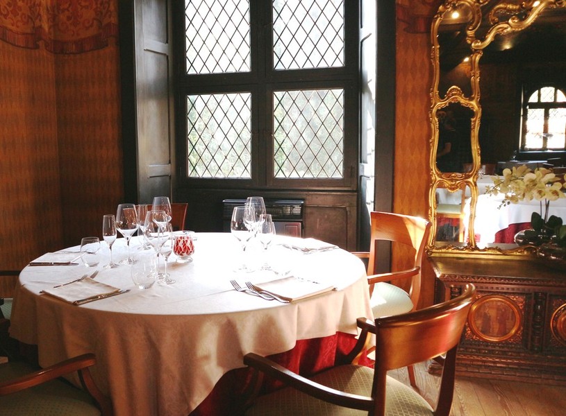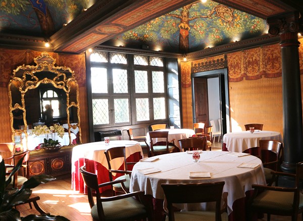 Il ristorante si trova al primo piano dello splendido ex convento medievale e occupa le prestigiose sale affrescate dall’architetto Coppedè all’inizio del secolo scorso. La capienza delle diverse sale interne, tutte eleganti e di grande fascino, arriva al centinaio di persone, che possono aumentare con la bella stagione sfruttando gli spazi all’aperto.