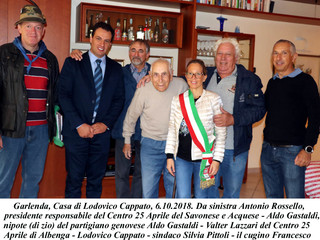 Alla delegazione si è unita anche la sindachessa Silvia Pittoli e tutti hanno omaggiato il vecchio partigiano, che, dallo spirito ancora vivace, non smetteva mai di raccontare con memoria nientaffato incerta gli episodi della Resistenza. Lodovico Cappato è stato anche vicesindaco di Garlenda dal 1975 al 1986 assieme al sindaco Domenico Romano, il quale, trovandosi in Toscana, lo ha raggiunto telefonicamente facendogli gli auguri.
