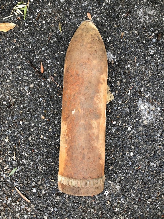 Trovato a Vado Ligure in uno scavo di un cantiere nel Piazzale San Lorenzo per i lavori relativi al depuratore un proiettile di mortaio.