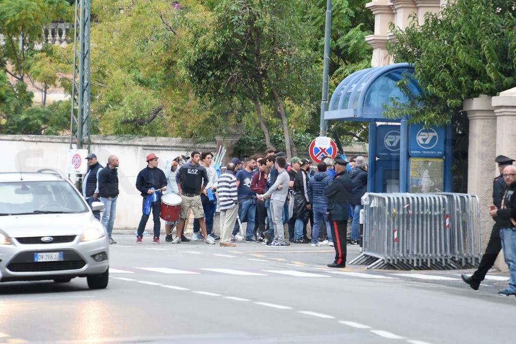 Grande spiegamento di forze e, per fortuna, non si sono registrati scontri ma solo qualche ‘sfottò’ tra le tifoserie di Sanremese e Savona, ieri sera prima e dopo il derby di Coppa Italia di Serie D, vinto dalla formazione matuziana per 2-1.