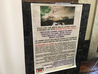 “A distruggere la lapide è stata la mano di coloro che non hanno mai voluto riconoscere che il fascismo è stato il male maggiore, che per oltre venti anni ha negato le libertà individuali e collettive, uccidendo o imprigionando chi si opponevano alla dittatura, emanando le leggi razziali per discriminare coloro che erano di religione ebraica o Geova, i Rom e i Sinti, gli omosessuali e quanti manifestassero delle diversità rispetto alle imposizioni dittatoriali del regime - commenta Samuele Rago - La Resistenza riportò i valori ed i principi della pace, della libertà, della giustizia sociale, della dignità della nazione e dei singoli cittadini, grazie alla scelta patriottica e antifascista di tanta parte del popolo italiano. Possono distruggere le lapidi ma la memoria dei crimini commessi dai nazifascisti, impressa nelle nostre menti, resterà per sempre a monito delle generazioni future".