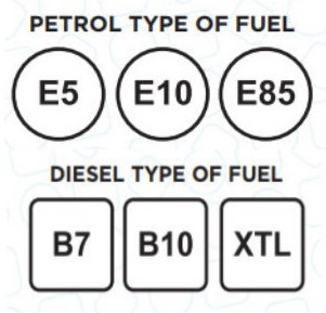 Il simbolo E5 rappresenterà il carburante per un veicolo a benzina con il 5% di alcool etanolo, mentre l'E10 avrà al suo interno il 10% di alcool. Il gasolio, contrassegnato da B7 ha un biodiesel al 7%, mentre B100 rappresenta gasolio di puro biodiesel. Per i carburanti gassosi troveremo la sigla H2, ovvero idrogeno mentre CNG è metano per auto, LNG metano liquido e LPG rappresenterà il Gpl. A breve verranno proposte nuove sigle anche per le auto elettriche.