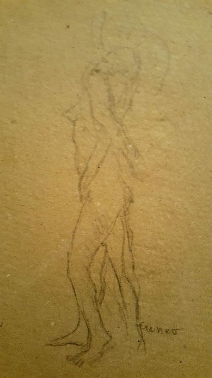 Per la nostra rubrica culturale "Alle origini della nostra civiltà", pubblichiamo un originale disegno, della pittrice e scultrice Renata Cuneo (1903- 1995) di Savona, una delle più importanti figure dell'arte ligure del Novecento. Dopo la laurea conseguita all'Accademia di Belle Arti di Firenze, dal 1929 Renata Cuneo frequenta a Savona l'ambiente futurista della città e dall'inizio degli anni '40 inizia la sua produzione per la fabbrica "M.G.A." dei Mazzotti di Albisola e per la manifattura di ceramiche "San Giorgio" di Albissola Marina.