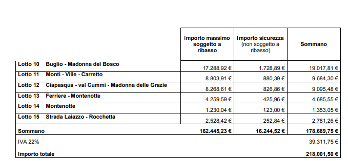 In dettaglio di seguito nella gallery, la stima dell’intervento (218.001,50 euro), suddiviso in lotti.