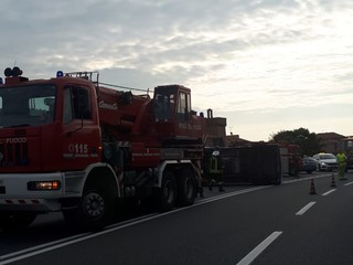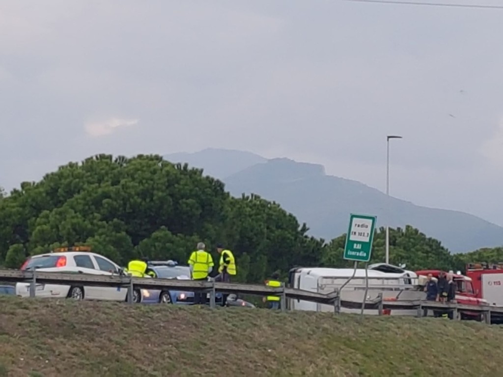 Doppio incidente al casello di Albenga, un furgone capottato e una macchina incidentata