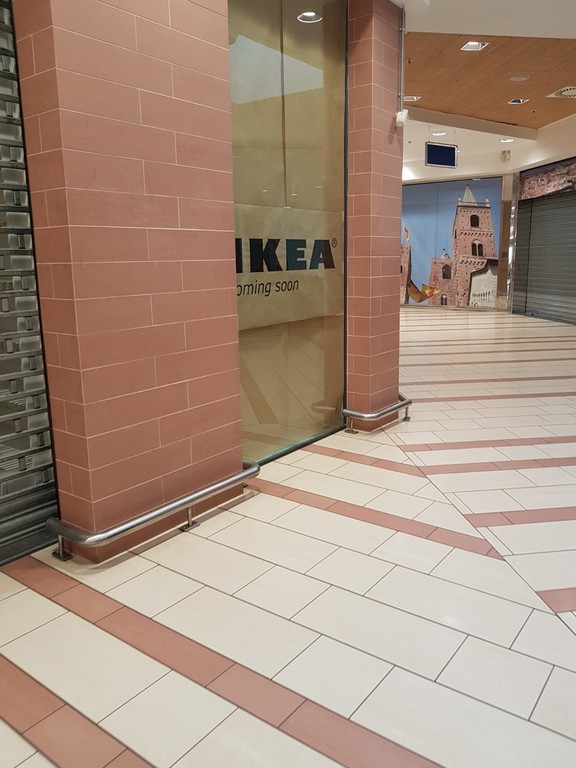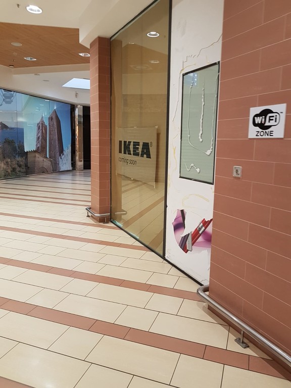 In questi giorni è apparsa sulle vetrine lasciate vuote da poco da un negozio di telefonia all’interno del Centro Commerciale “Le Serre”, la scritta Ikea.