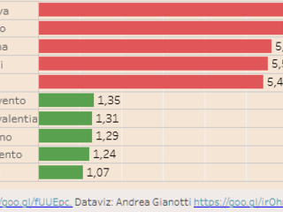 Agli ultimi posto (ma in questo caso è un dato positivo) Aosta con solo 1,07 incidenti, Agrigento con 1,24 e Avellino con 1,29.