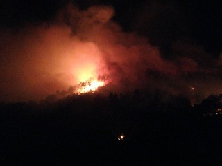 Aggiornamento ore 22.00: il vento si fa sempre più forte e il fuoco si è avvicinato alle abitazioni obbligando i vigili del fuoco a evacuare due abitazioni.