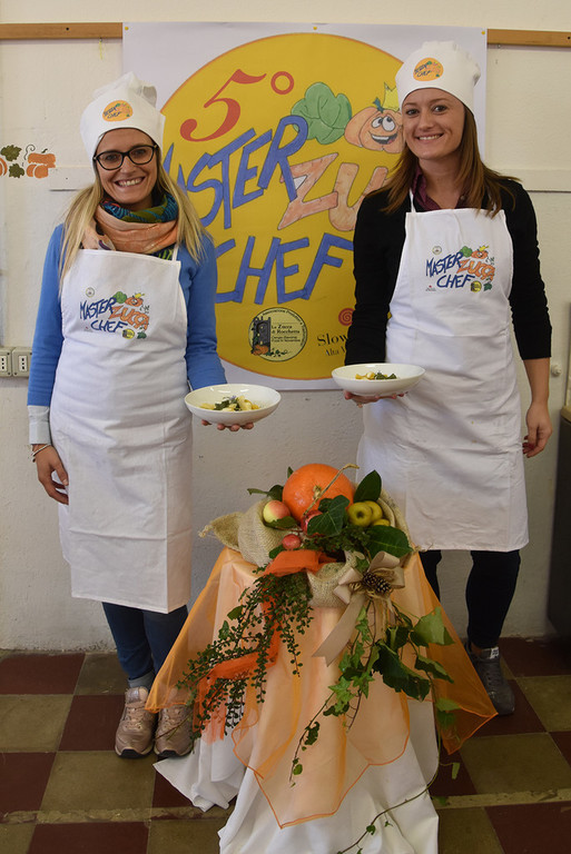 Chiara Chiappasco e Martina Blangero con il piatto “Fantasia di caramelle alla zucca di Rocchetta”;