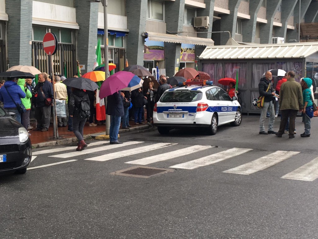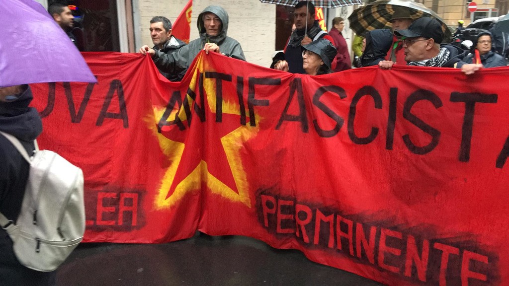 Numerose le persone che hanno risposto presente nonostante l’intensa pioggia e sono scese per le vie della città per manifestare contro il fascismo e il razzismo.