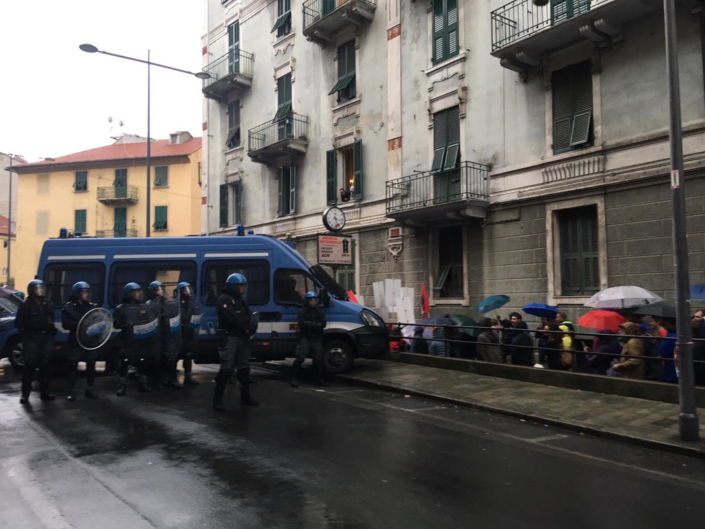 Corso Ricci, via Trincee, via Genova, piazza Saffi, via Piave, via Torino, via Milano e via Verdi: questo il percorso che ha portato il corteo (conclusosi successivamente in piazza Sisto) nella “zona rossa” di via San Lorenzo dove la Prefettura ha disposto il blocco per evitare l’incrocio con la nuova sede di Casa Pound.