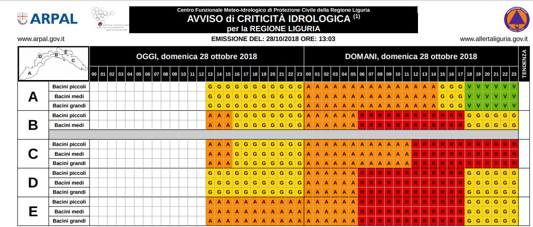 Data la tipologia dell’evento, verranno effettuate ulteriori valutazioni relative ai colori e alle zone coinvolte nell’allertamento, non solo in base alle uscite modellistiche, ma anche in virtù di quanto effettivamente verificatosi in Liguria.