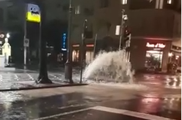 La rete non regge e l'acqua sgorga dai tombini in maniera violenta