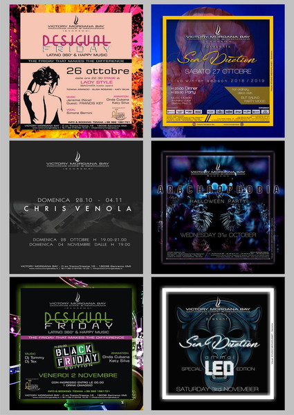 “Ogni serata in programma – spiegano dal Victory - avrà una sua caratteristica con tipologia di musica differente e tanti dettagli che renderanno unico ognuno degli appuntamenti!!! In onore di questo fantastico periodo a cavallo tra Ottobre a Novembre il Victory Morgana Bay ci propone questo programma:
