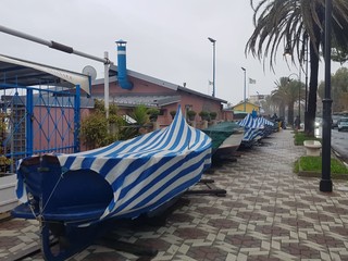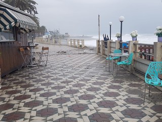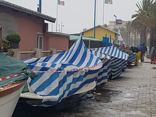 Ad Albenga si corre ai ripari mentre il mare inonda le strutture degli stabilimenti balneari ormai chiusi.