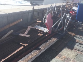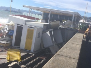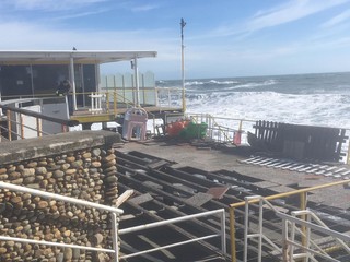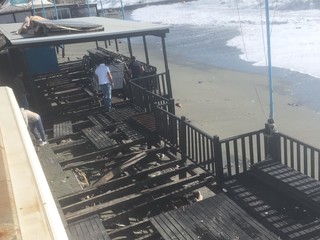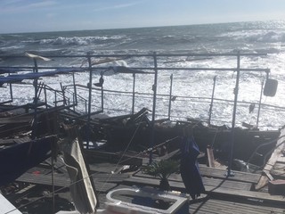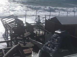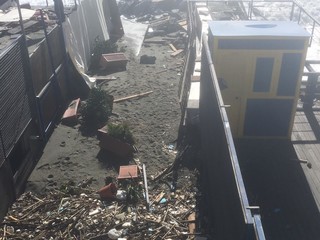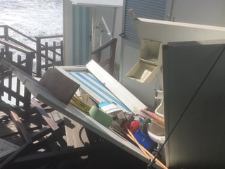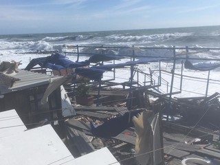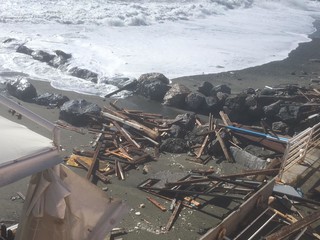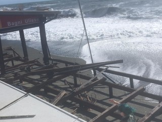 Legname, piscine divelte, lamiere sulla spiaggia: questo il terribile scenario che si può purtroppo intravedere ad Albissola Superiore.