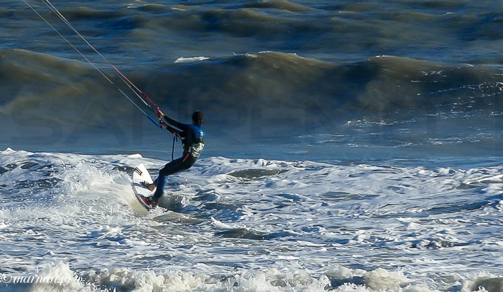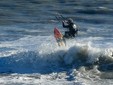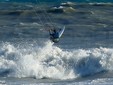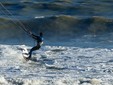 E’ uno sport velico, di recente invenzione (1999), nato come variante del surf; consiste nel farsi trainare da un aquilone (‘kite’ in inglese), che usa il vento come propulsore. Alcuni sportivi oggi hanno anche provato il tradizionale Il windsurf ovvero il planare sull'acqua con una tavola a cui è fissata una vela... ma il mare ancora molto mosso non gli ha dato molte possibilità.