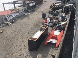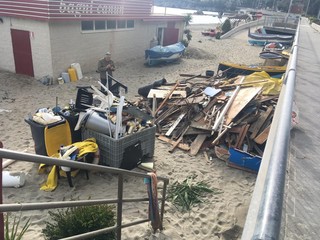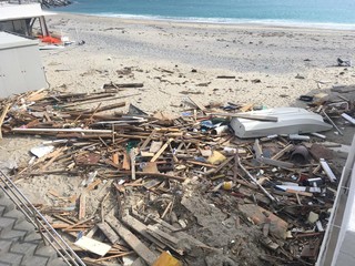 La spiaggia è un cimitero di legname, barche distrutte, vetri rotti, impianti sradicati: si tenta la ricostruzione a testa bassa ma è prematuro dire quanto può essere la stima dei danni.