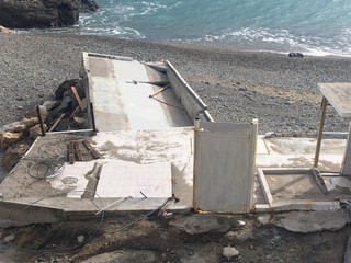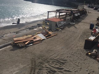 La mareggiata dello scorso 29 ottobre ha messo in ginocchio tutti i comuni della provincia di Savona e anche gli stabilimenti balneari di Bergeggi hanno subito ingenti danni alle strutture.