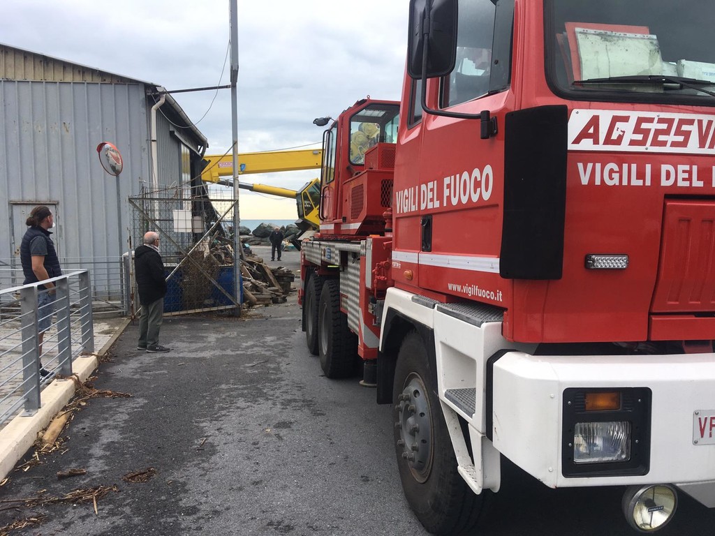 Crolla una gru a Vado Ligure: sul posto i vigili del fuoco (FOTO)