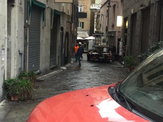 Chiusa momentaneamente al traffico dei pedoni via Pia a Savona lato piazza della Maddalna a causa della caduta di alcuni pezzi di ardesia da un palazzo nei pressi della tabaccheria.