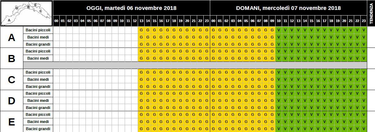 Allerta gialla su tutte le zone e tutti i bacini fino alle 10 di domani, mercoledi 7 novembre.