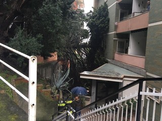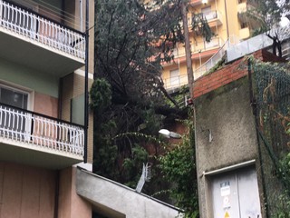 Attimi di paura a Varazze: un pino si abbatte sulla facciata di una palazzina