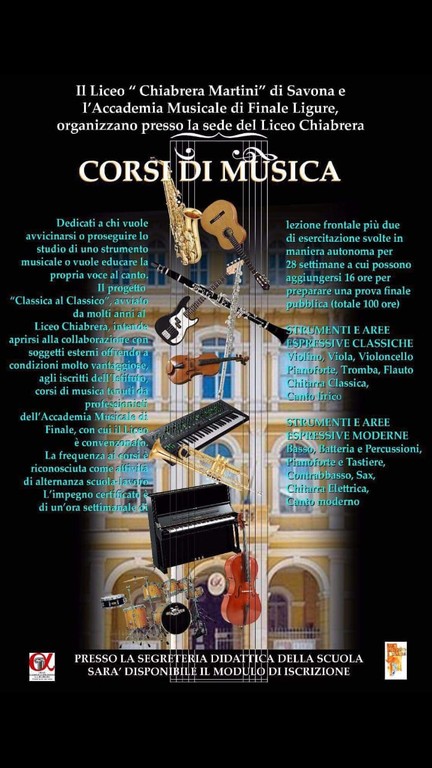 Martedì 6 novembre hanno preso il via i corsi di musica che gli Insegnanti dell'Accademia Musicale del Finale terranno agli allievi degli Istituti Superiori G. Chiabrera e A. Martini di Savona.