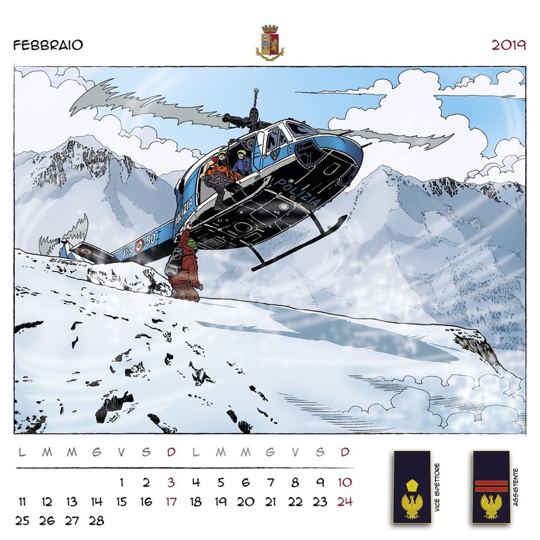 Non solo fumetti, infatti, nel calendario Polizia di Stato 2019. Ad ogni tavola, sono associati i nuovi segni distintivi di qualifica, che consentono di cristallizzare, anche graficamente, l’identità civile della Polizia di Stato.