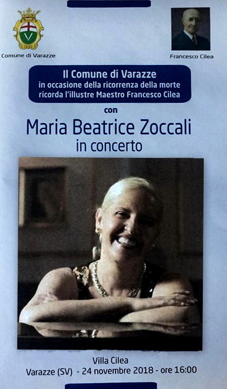 Con un concerto della famosa pianista calabrese Maria Beatrice Zoccali, la Città di Varazze ricorda l’illustre Maestro Francesco Cilea, in occasione della ricorrenza della morte.