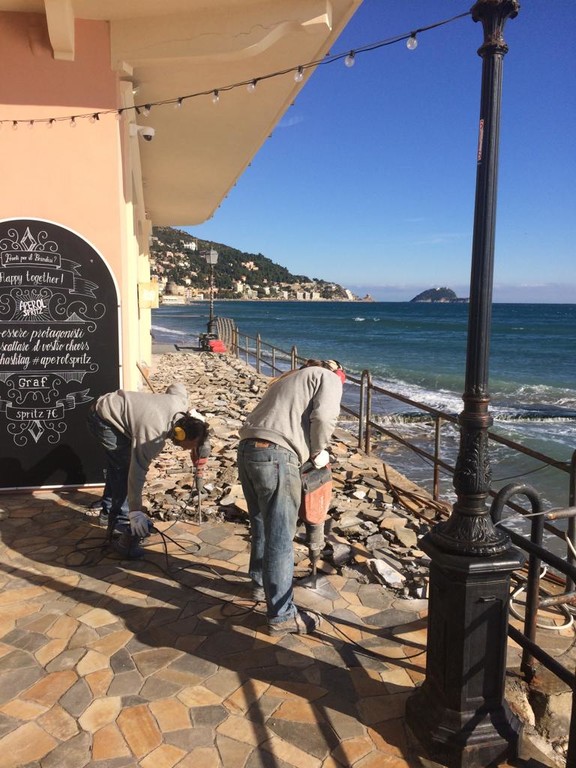 Sono iniziati stamattina i lavori di rifacimento di Passeggiata Graf. La ditta incaricata ha iniziato con lo smantellamento della vecchia pavimentazione, già parzialmente distrutta dalla mareggiata della notte del 29 ottobre scorso