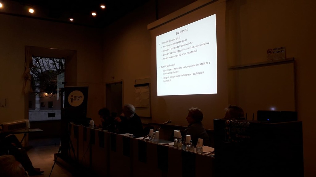 Gabriele Ballero, responsabile ufficio progetti; Valeria delle Cave, comunicazione progetti, IIT - Istituto Italiano di Tecnologia: “Il nostro istituto è privato ma finanziato dallo Stato. E' una piattaforma open-source: abbiamo creato una piattaforma che chiunque può migliorare, permettendo applicazione e risultati scientifici notevoli e necessari in Europa. Abbiamo 12 centri che creano sinergia fra i ricercatori e due unità presenti negli Stati Uniti. I nostri programmi sii sviluppano su: robotica, nano materiali, scienza computazionali e tecnologie della vita con uno staff di 1600 persone, ospitato per più della metà a Genova. Uno dei nostri vanti è il fatto che quasi ¾ del nostro personale sia scientifico, raggiungendo un 41% di personale femminile. Negli anni attività scientifica dell'IIT su 157 milioni vinti, 94 milioni sono coperti dall'Europa, da qui la sua importanza per i finanziamenti. Il supporto alle persone e i risultati concreti sono oggetti evidenti dell'importanza dell'Europa. Tra i progetti che mi sento di citare uno particolare dove la fisica è stato legato alla musica: un progetto di eccellenza per portare avanti nuovi strumenti musicali tramite l'applicazione di realtà virtuali e delle leggi della fisica. Un altro evento molto importante è un progetto di 6 milioni di euro che porta a Genova 24 ricercatoti da tutto il mondo per lo studio di malattie e soluzioni legate al cervello. Ciò ci metterà in contatto con i più importanti centri di ricerca in tutto il mondo” “ La comunicazione è importante anche per i progetti europei perché quando i sogni dei ricercatori vengono realizzati è importante farlo sapere e mostrare i risultati. L'Aicab ha origine ha Genova e grazie a fondi EU il progetto ha potuto svilupparsi sempre più. I nostri risultati sono stati pubblicati su giornali scientifici e non solo, in tutto il mondo: storie interessanti anche per un pubblico non italiano. La nostra capacità di creare in Italia è arrivata in tutto il mondo”.