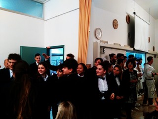 A fine cena ci siamo intrattenuti a conversare con le insegnanti. Ci racconta la vicepreside Stefania Arata: “Anche per quest’anno il bilancio è ottimo, le quinte ci regalano sempre grandi soddisfazioni. Come in ogni scuola, le classi prime rappresentano sempre un po’ una fase di sofferenza, gli alunni sono giovani e non sempre hanno le idee chiare sul loro futuro, alcuni non sono ancora convinti di custodire una particolare vocazione… Ma dal terzo anno in su i ragazzi crescono, maturano, scoprono e valorizzano le proprie capacità e iniziano ad arrivare i traguardi importanti. E noi insegnanti li vediamo crescere, al punto che in quinta sentiamo di averli tirati su quasi come figli”.